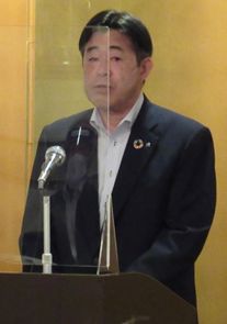 | また村本社長は来賓の挨拶の中で、「建設業界は幾つもの問題を抱えている。失われた20年が今のこうした状況を生み出してしまったが、若い人に戻ってきて欲しいがために色々な施策に取り組み、結果的には就労環境はよくなりつつある。いまわれわれはこの業界を本気で変えようとしている。一致団結して一丸となってこの改革をやり遂げよう。」と話された。 講演会後は交流会を開き、奈良県中小企業団体中央会の橋本博副会長が祝辞を述べ、新組合員、関東地区会からの招待者の紹介の後、南條秀和執行役員土木統括部長の発声で乾杯をした。 |