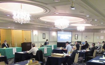 | 去る8月28日大阪市天王寺区のホテルアウィーナ大阪で第55回通常総会を開催した。今回は新型コロナウイルス感染症対策として極力出席者数を少なくし、会場を4部屋に分け、さらに村本建設の東京支店会議室それぞれをオンラインでつなぎ、ソーシャルディスタンスを確保して開催した。 役員改選では玉置代表理事が再選された。 総会冒頭玉置代表理事は「2019年度は村本建設からの優先発注額が、目標額の120億円を達成し139億円となった。また賛助会にあっては目標額12億円に対して14億円と大きく伸ばすことが出来た。新型コロナウイルスの影響は我々の業界にとっても脅威だがこれを追い風に変えていきたい」とあいさつをした。 |